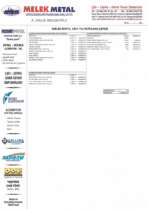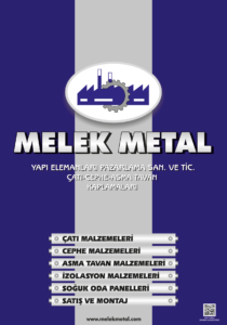 • Melek Metal Yapı Elemanları 1990 yılından beri sanayi sektöründe bulunan her türlü çatı - cephe - asma tavan kaplaması ve izolasyon malzemelerinin satışını ve montajını yapmaktadır. Firmamız Assan Panel A.Ş. ve Assan Alüminyum A.Ş.Galline Eurasia, Ravaber Yapı Ürünleri A.Ş. bölge bayisidir.